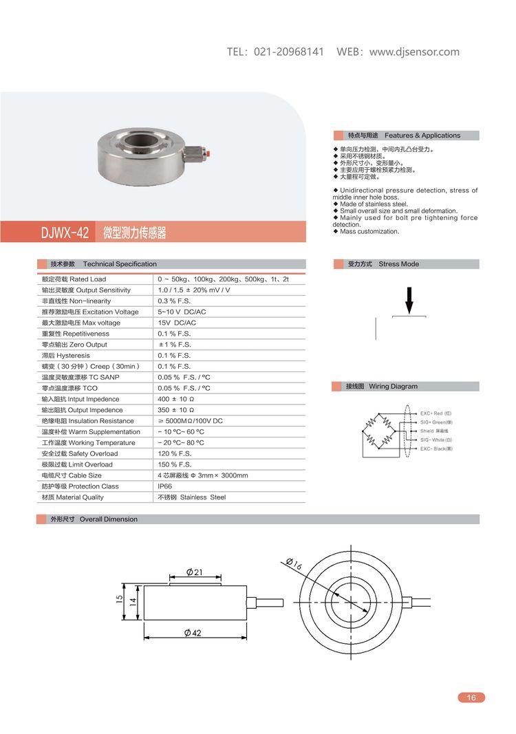输出 | 1.0/1.5 ± 20 mV/V | ||