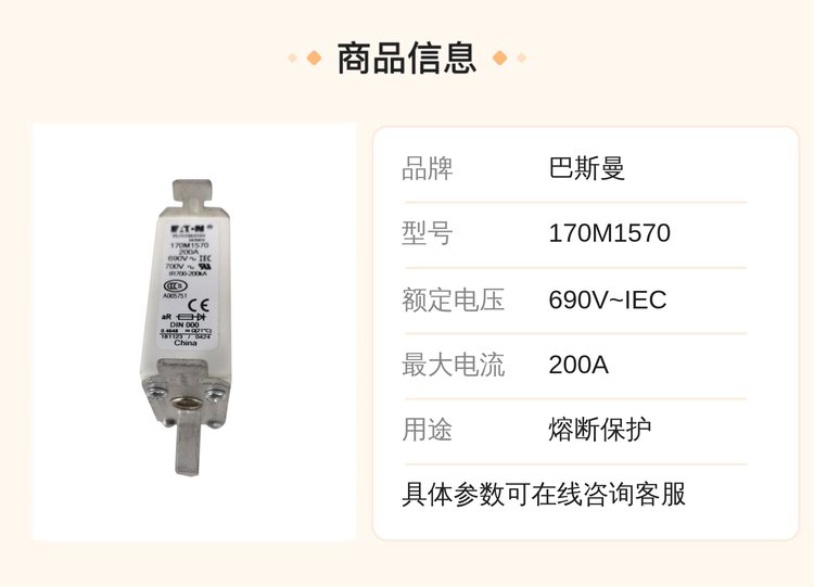 170M1570快速熔断器保险丝陶瓷型巴斯曼品牌