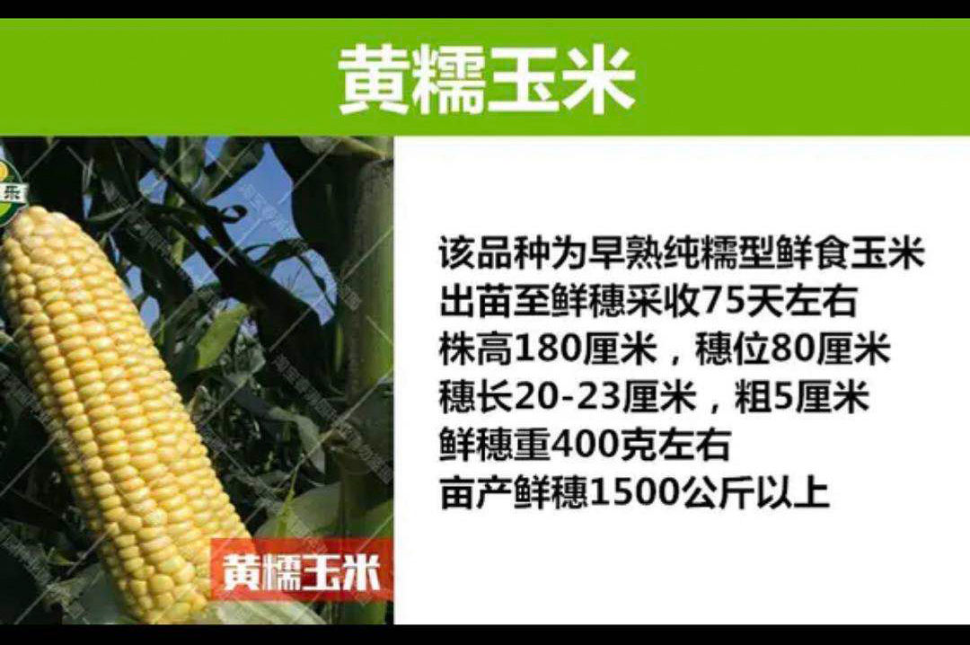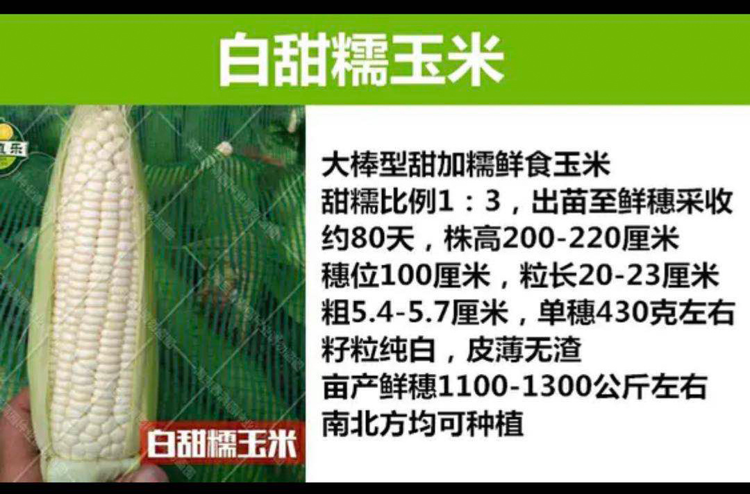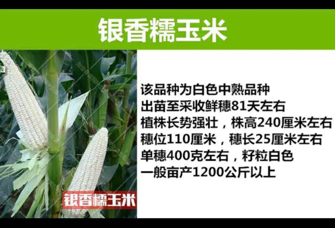 春播出苗至收鲜穗85天左右,夏播80天。株型半紧凑,长势健壮,株高220-240厘米,穗位100厘米,穗长20-24厘米,穗行数14-16行,鲜穗重500克左右,亩产鲜穗1500kg左右。穗轴白色白粒,锥形,高抗病、糯性强。根系发达,抗倒伏,丰产早熟。