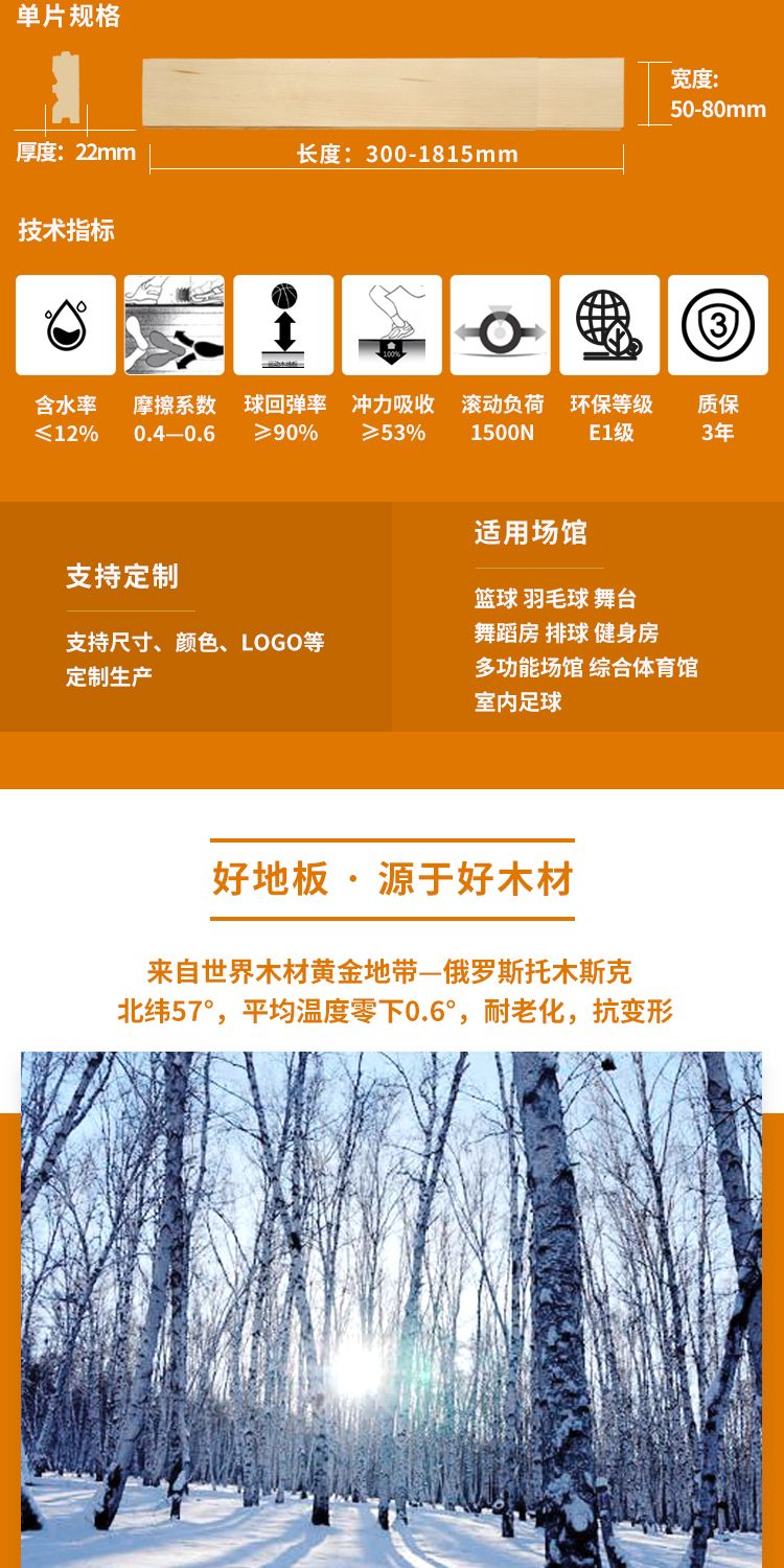 适用范围 | 室内体育场馆 | 表面形状 | 天然木纹 |