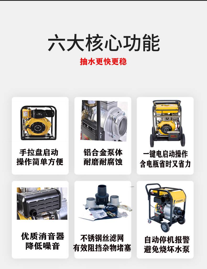 6 8寸柴油机抽水泵 移动式防汛应急排涝泵 伊藤动力YT80DPE/YT60DPE 泵轴位置边立式