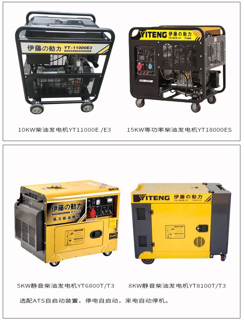 伊藤动力8KW5KW3KW柴油发电机YT6800E3 移动便携式单三相手/电启动 是否支持加工定制 | 是 | ||