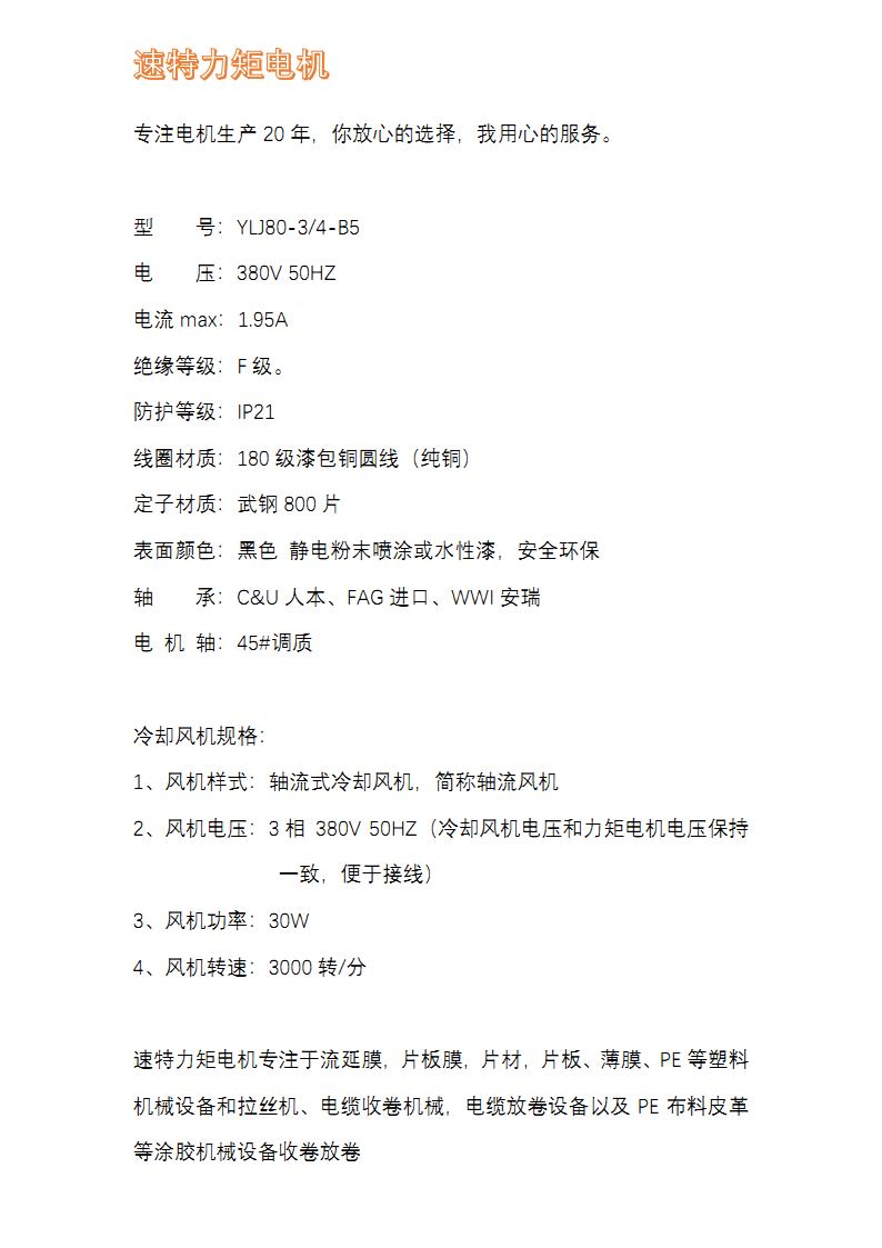 速特供应 力矩三相异步电机YLJ80-2/6 废边收卷 输送牵引 力矩恒定 是否进口