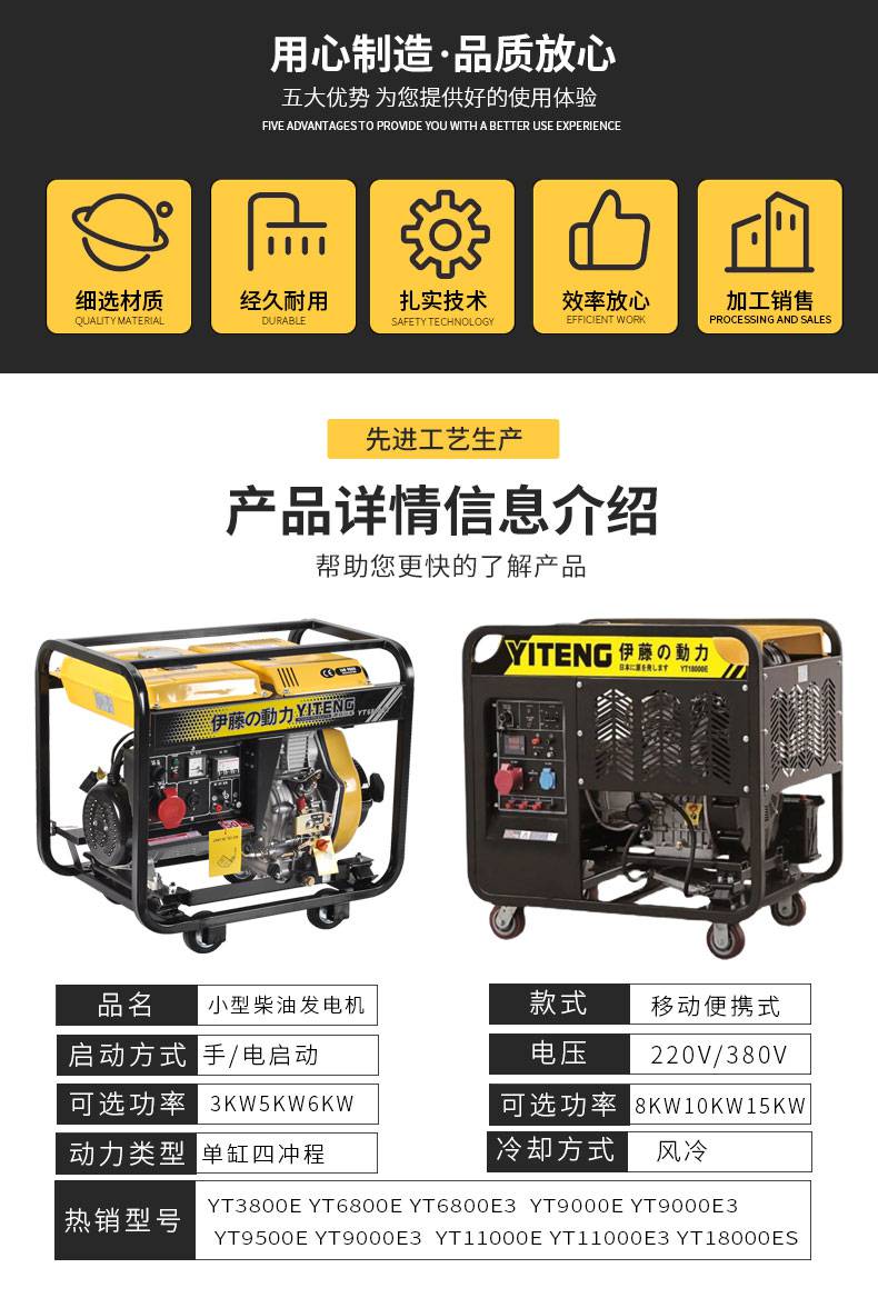伊藤动力8KW5KW3KW柴油发电机YT6800E3 移动便携式单三相手/电启动 是否支持加工定制 | 是 | ||