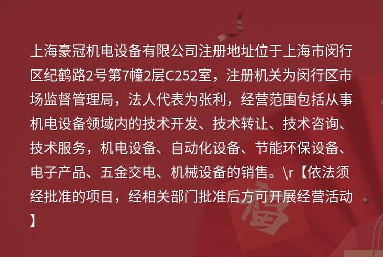商铺名称:上海豪冠机电设备有限公司