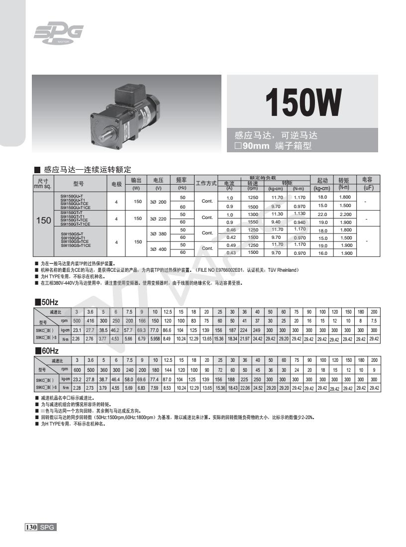 SPG电机 S9I150GU-TCE SPG感应马达 SPG马达总代理