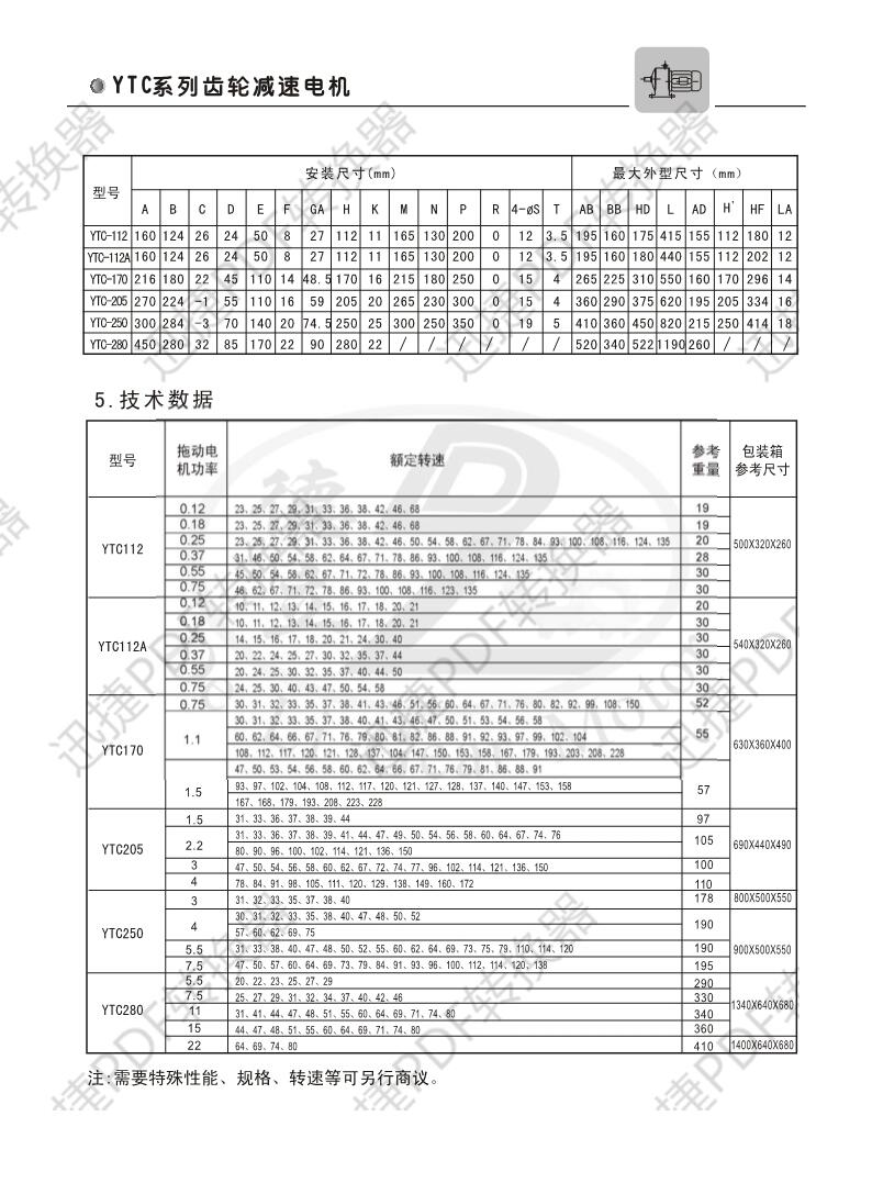 德立卧式硬齿面同轴式圆柱齿轮减速三相异步电动机YTC112A-0.37KW