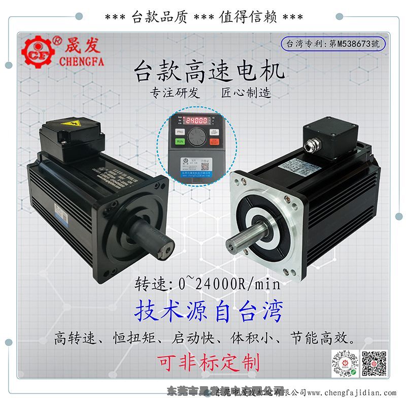 2、额定转速:高速0~10000r/Min、超高速0~24000r/Min,两等级