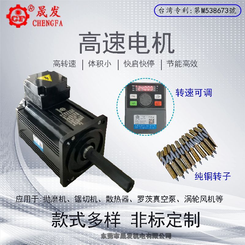 速电机俗称特殊电机、特殊三相异步电机,电机优点是高转速,高速电机的转速通常在3000转/分及以上、高速电机具有:1)设计角度不同,采用纯铜转子,无磁性、无碳刷、与直流电机结构大不一致;2)高转速,功率密度大,体积会远小于普通电机,是普通电机的1/3,可以有效的节约材料;3)具有瞬启、瞬停、恒转矩;4)传动效率高,节能降耗且环保,低噪音等特性。