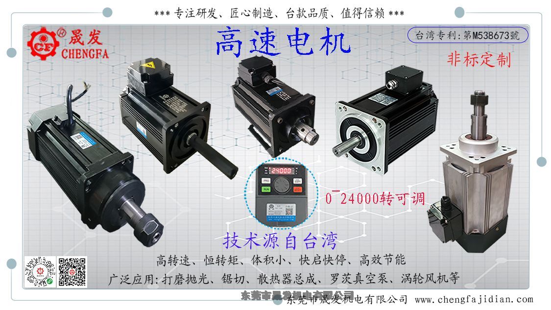 高速电机俗称特殊电机、特殊三相异步电机,电机优点是高转速,高速电机的转速通常在3000转/分及以上、高速电机具有:1)设计理念、角度、技术参数不同,采用纯铜转子功率密度大;2高转速,无磁性、无碳刷、与直流电机结构大不一致,体积会远小于普通电机是普通电机的1/3,可以更多有效的安装空间;3)具有瞬启、瞬停、恒转矩;4)传动效率高,节能降耗且环保,低噪音等特性