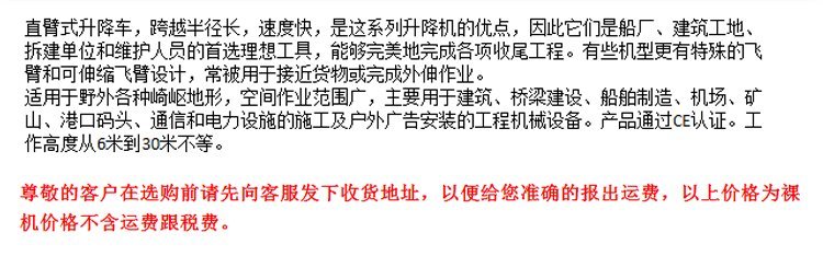? ? 本公司的产品共有八大系列六十多个品种,主导产品是SJY系列剪式液压升降平台、SJT液压升降货梯、SJYC液压升降车、SJYL系列铝合金升降平台及液压固定式登车桥、电瓶车等。公司所有产品全部符合国家行业标准。并且我们自行研制开发多桅柱旋转式铝合金、轨道智能式升降平台拥有同行业及专家的好评、主要性能达到国内领先水平。同时我们可以为用户定做各种类型的高吨位升降货梯,固定式升降平台、特殊外型、尺寸的升降平台及停车设备。