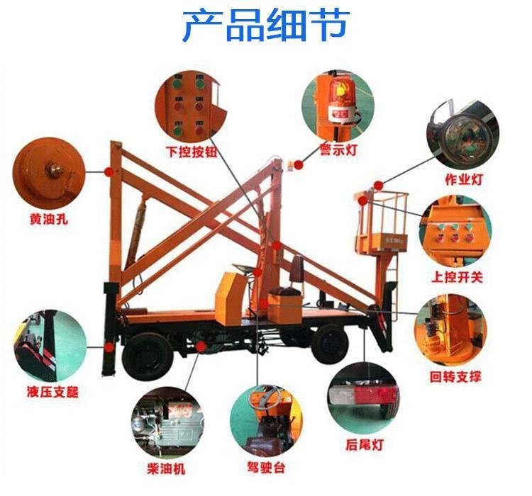 曲臂升降平台360度旋转无需外接电源,可跨越障碍物工作,升降平稳安全的曲臂式升降平台,采用折臂式工作臂,作业的范围和空间不受限制。