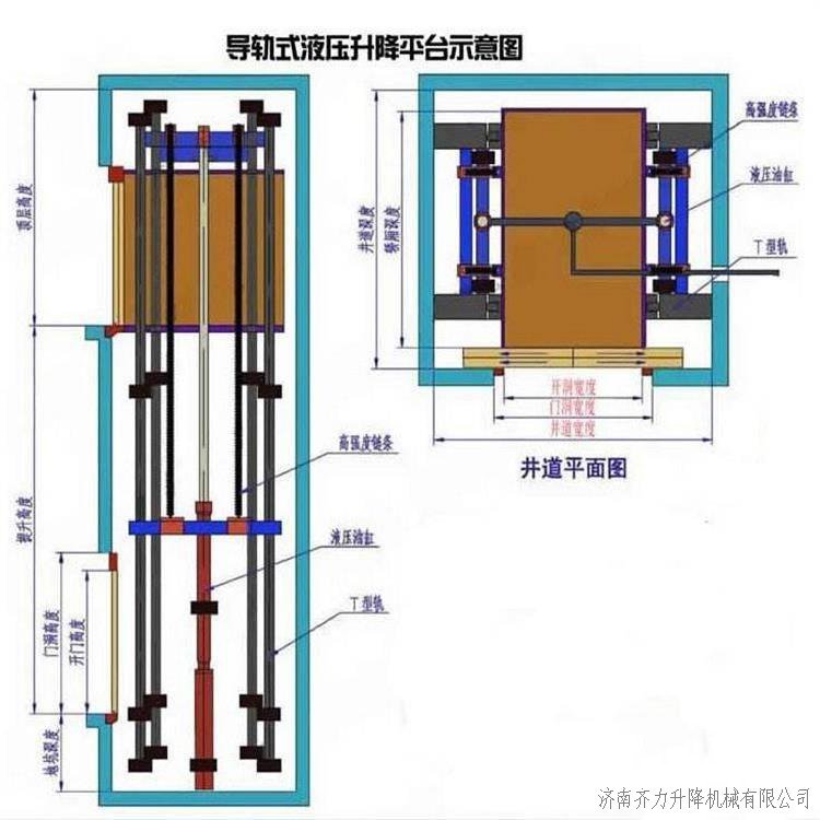 ????导轨式升降平台是用于货物升降的液压升降机械设备,采用液压油缸作为主要动力,通过重型链条和钢丝绳传动,保证机器运行的安全。无需地坑和机房,特别适合于有地下室、仓库改造、新建货架等,具有安装维修方便、美观、安全、操作方便。具体根据现场的实际环境生产。