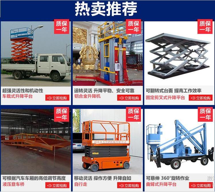 济南齐力升降机械有限公司是一家集设计、研发、生产和销售于一体的制造型企业,专业制造液压升降机械和高空作业平台。公司产品具有设计新颖、结构合理、升降平稳、载重、操作简单、维护方便等优点。产品广泛应用于各个行 业,如工矿企业、生产流水线、铁路、机场、车站码头、货物装卸升举、厂房工地、仓储物流、高空设备安装等场合。?