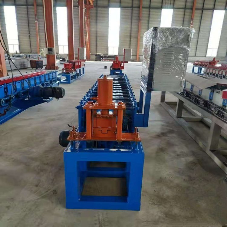 几字钢机器是一套轧辊可同时生产多种规格几字型檩条成品的单卷成型机组。由被动装料架、整平装置、冲孔装置、成型后切断装置、液压站、电脑控制系统等。