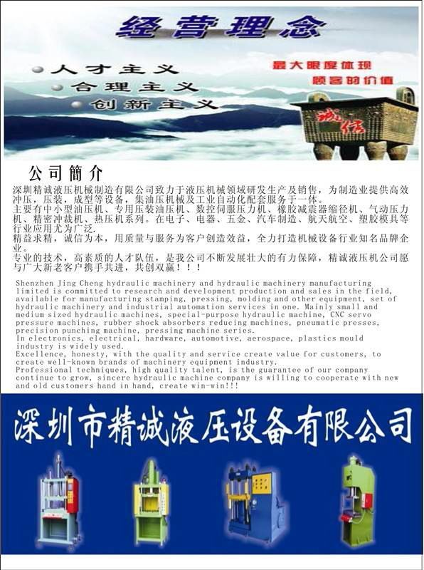 快速压铸件冲边机(油压压力机)适用范围:本系列油压压床适用于零部件的压装、零件的校正和铆接;也适用于塑性材料的成形如板料的落料、拉伸、压印等以及塑料、粉末制品的压制等多种用途。