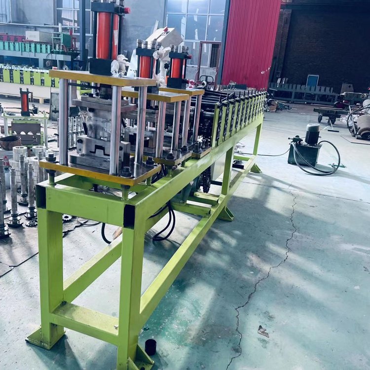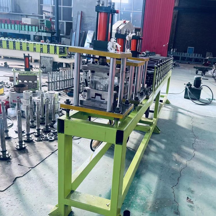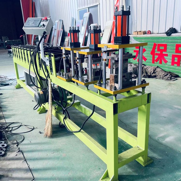 几字钢机器是一套轧辊可同时生产多种规格几字型檩条成品的单卷成型机组。由被动装料架、整平装置、冲孔装置、成型后切断装置、液压站、电脑控制系统等。