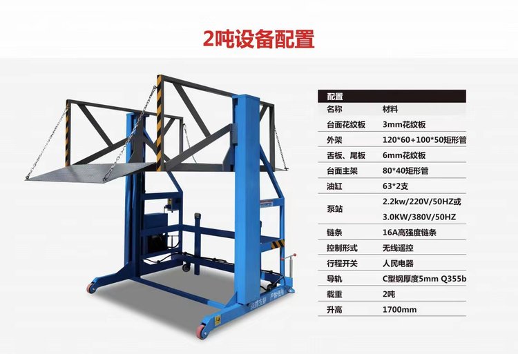 规格 | 1.5吨升1.7米(台面2米X1.5米)定金 | ||