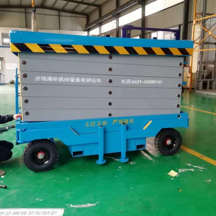 移动式升降平台为四轮移动式结构。 轮胎分充气轮胎、实心轮胎及聚氨酯脚轮。 剪叉主机构采用上海宝钢锰钢矩形管制作。 平台升降动力为手动或电动220v、380v、和柴油机、电瓶动力等形式。 采用进口意大利泵站,特殊环境也可采用防爆泵站及防爆电器。 升高6——18米, 载重0.5—2吨。台面设有防缘塑质扣板或或花纹钢板。具有移动灵活、升降平稳、操作方便具,整体美观 大方等优点。