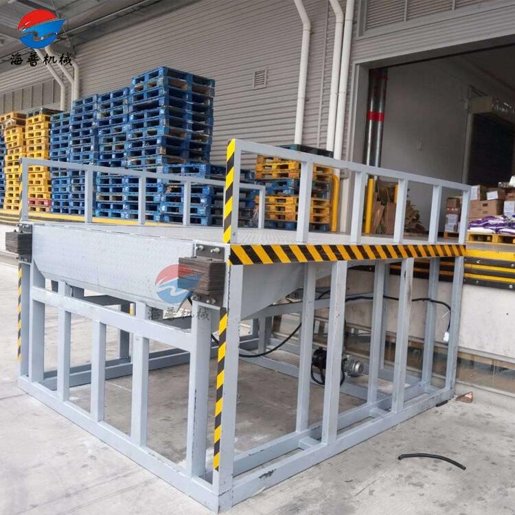 高强度“U”形梁设计能保障其高负载长时间运行不变形。 采用防滑花纹钢板,使平台有良好的防滑性能。两侧设防轧脚裙板,防止脚趾伸入平台造成意外伤害。设有保障维护人员进入登车桥内部维护时安全的支撑杆。固定式登车桥典型的现代托板货物装卸平台包括一个高起的装卸货站台,一个作为站台与运输车辆之间连接浮桥作用的高度调节板和将货物搬运进出运输车辆的叉车或手动搬运车。装卸货站台的高度固定,但来往运输车厢的厢地高度不一,运输车辆与装卸货站台之间总是形成一定的高度落差或间隙。造成搬运叉车不能进出运输车辆直接装卸货物。运用固定式登车桥提供可靠的连接。使搬运叉车能够安全、快速地进出运输车辆进行装卸货作业。主要用于物流、邮电、交通、电力、工矿、企业等装卸货物。