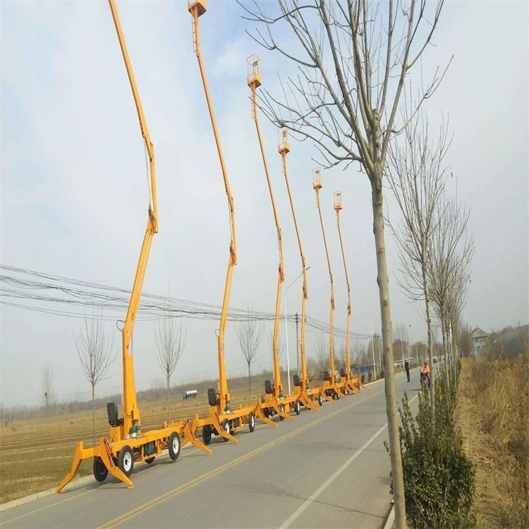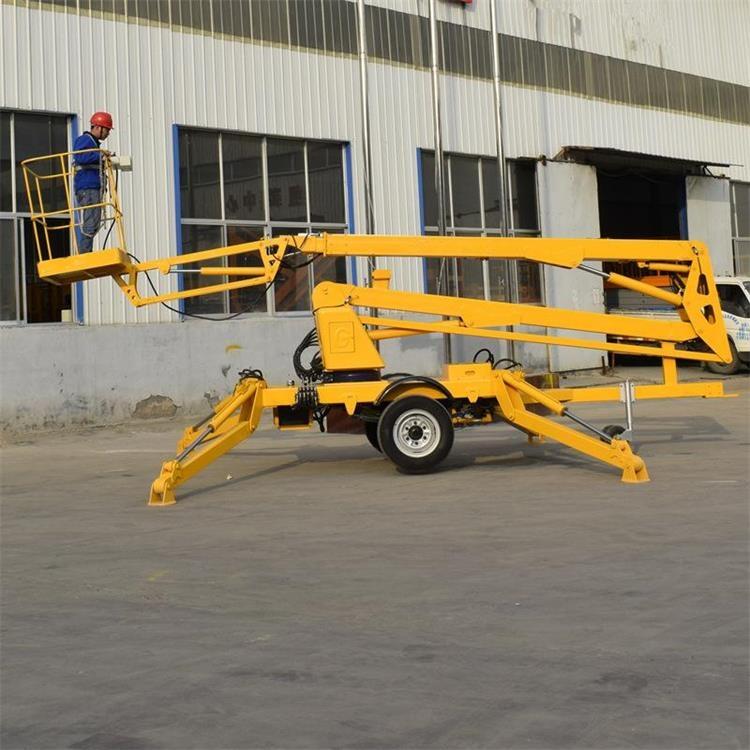 拖车曲臂式升降机:可以挂在汽车上,与汽车同步,适合户外高空作业。升降方式:1、用380-220V电源2、用电源不方便,可以用电瓶驱动升降。外型美观,行走方便。