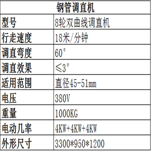 也可任意启动一个单独系统操作灵活方便、省时省力。钢管调直除锈机特点: 采用机械传动,结构合理性能稳定,操作方便? 运行平稳噪音低,底部设置4个移动轮子,方便移动? 机械速度快、马力高,可一次性完成钢管调直除锈刷漆多项操作? 调直后钢管表面无压痕、缩颈现象。? 对钢管无损伤拉长现象,省时、省力、高效、环保? 每分钟处理2条6米钢管,一天工作8小时处理量能高达30T左右。矫直机在进行使用的过程中其机体就会产生其微小的振动,在使用时一定要将机盖连接手柄拧紧,这样可以在一定程度上避免其事故的发生。钢管调直机是建筑钢管脚手架钢管的保养机 械,主要用于矫直修复在建筑施工中弯曲变形的脚手架钢管 、及其他管材。cm03调直后的钢管表面无压 痕﹑缩径现象,优于建设部制定的标准。除锈系统快速调直装置: 钢管调直一体机的除锈系统是经过多位工程师参考大量用户反馈信 息进行精心设计和反复试验而出的。用这个系统调节钢丝刷只需不到一分钟,而且非常方便无论是否熟练 ,调整钢丝刷的力度间距都可轻松操作,拆换钢丝刷更为方便,在机体外部进行而且钢丝刷不需要加工和 特别的工序要求,随处都可以买到。他的方便快捷是给广大用户节约成本.