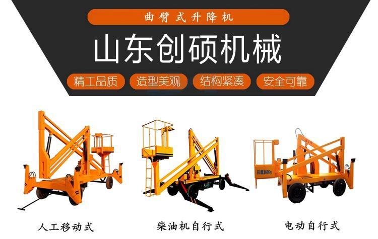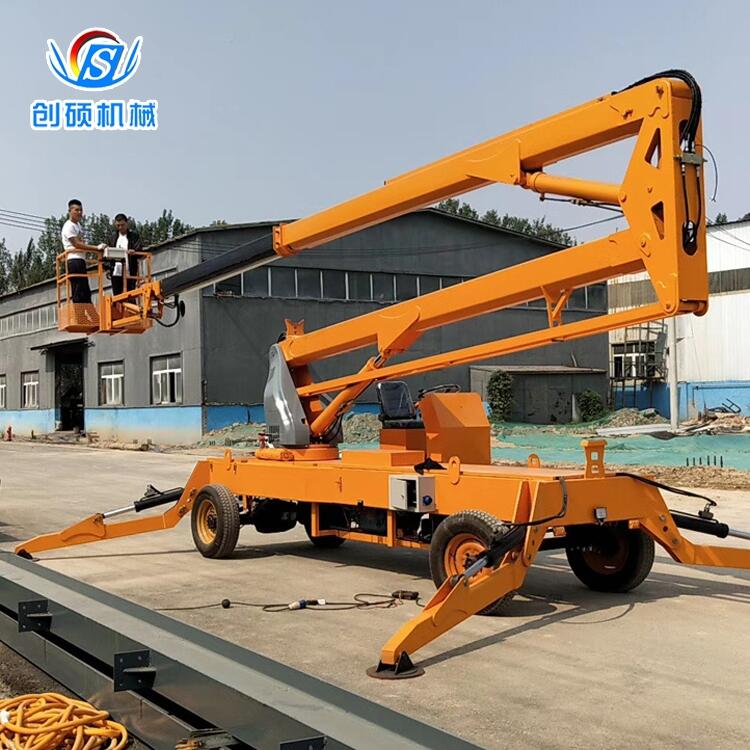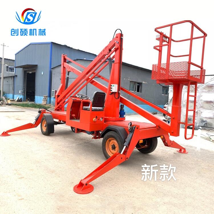 拖车曲臂式升降机:可以挂在汽车上,与汽车同步,适合野外高空作业。升降方式:1、用380-220V电源2、用电源不方便,可以用电瓶驱动升降。外型美观,行走方便。
