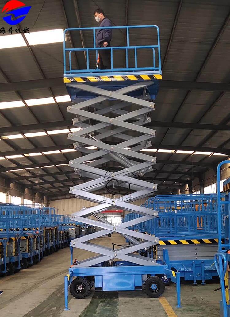 移动剪叉式升降机是用途广泛的高空作业专用设备。它的剪叉机械结构,使升降台起升有较高的稳定性,宽大的作业平台和较高的承载能力,使高空作业范围更大、并适合多人同时作业。它使工作效率更高,安全更保障。