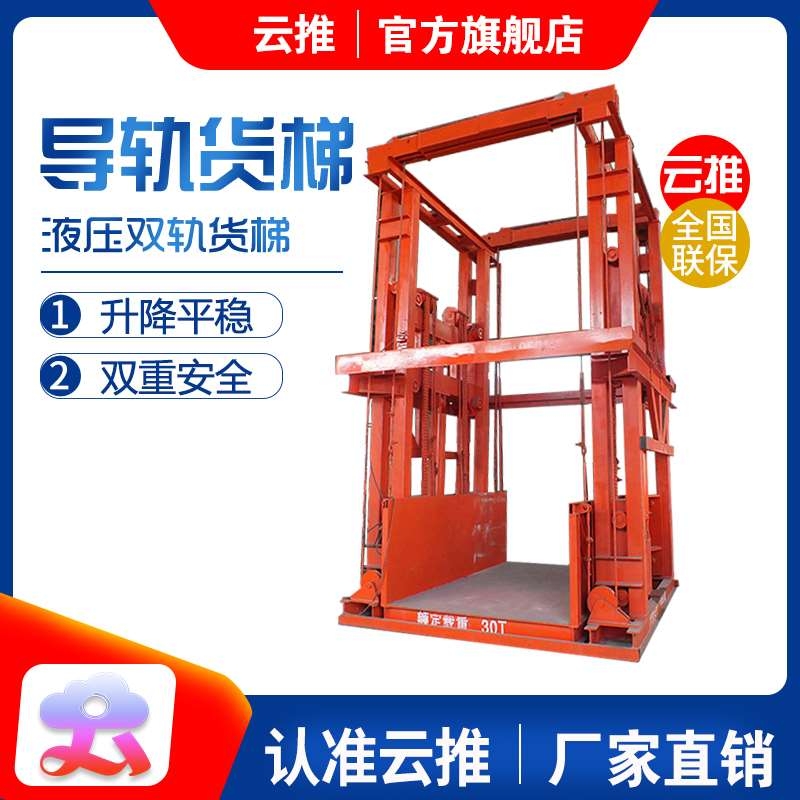 山东云推机械导轨式升降机优势设有溢流阀防止上行运动时系统压力过高。设有应急手动阀当电源发生故障时,可使轿厢应急下降到附近的楼层位置开门。设有手动泵当系统发生故障时,可操纵手动泵打出高压油使轿厢上升到进的楼层位置。设有油箱油温保护当油箱中油温超过标准设定值时,油温保护装置发生信号,暂停电梯使用,当油温下降后方可启动电梯。升降货梯(导轨式升降作业平台)升降系统靠液压泵站驱动,故也被称作液压升降货梯。升降货梯用于建筑物各种工作层间货物上下运送;立体车库和地下车库层高间汽车举升等。升降货梯载重量大,实现多点控制,上下楼层互动联锁,达到使用;提升高度高,采用旁置油缸、或双侧式油缸,运行平稳、无噪声、维修方便、使用寿命较长;停电手动下降、紧急停止按钮,方便、快捷、实用。