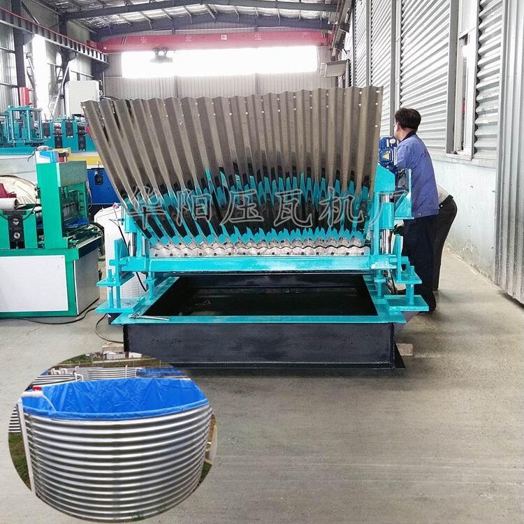 全自动镀锌板养鱼池设备流水线生产厂家全自动冲孔连接也方便。本厂生产的高密度帆布养鱼池机械设备,实现了成型+冲孔+起拱+切断为一体的自动化设备,使用方便,出来就是成品板,直接组装就可以,省去了人工制作的6道工序,提高了工作效率,减少了人工,机器是电脑调节压板弧度。