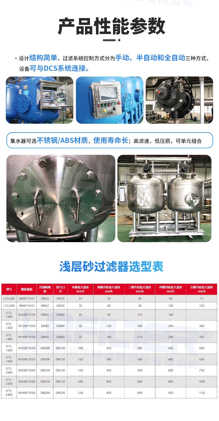 砂石过滤器是通过均质等粒径石英砂形成砂床作为过滤载体进行立体过滤的过滤器,常用初级过滤。其砂床是三维过滤,具有较强的截获污物的能力,在所有过滤器中,用砂石过滤处理水中杂质和无机杂质,这种过滤器滤出和存留杂质的能力很强,并可不间断供水。只要水中物含量超过10mg/L时,无论无机物含量有多少,均应选用砂石过滤器。