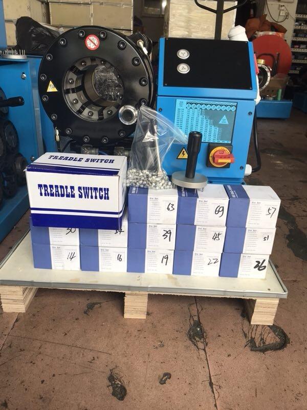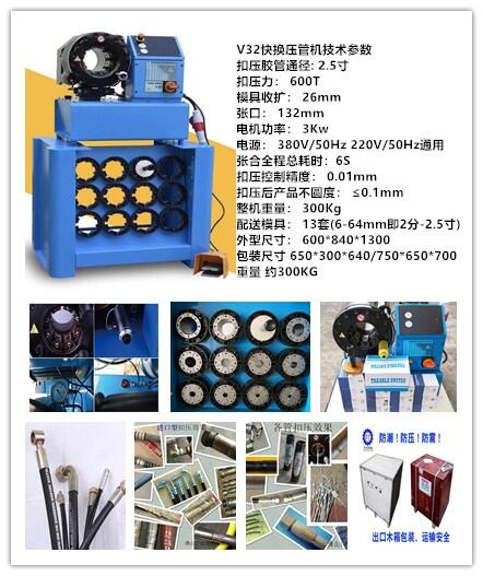 千分尺:用于调节扣压胶管收缩量的大小,左转半周多压进1mm,右转半周少压进1mm。