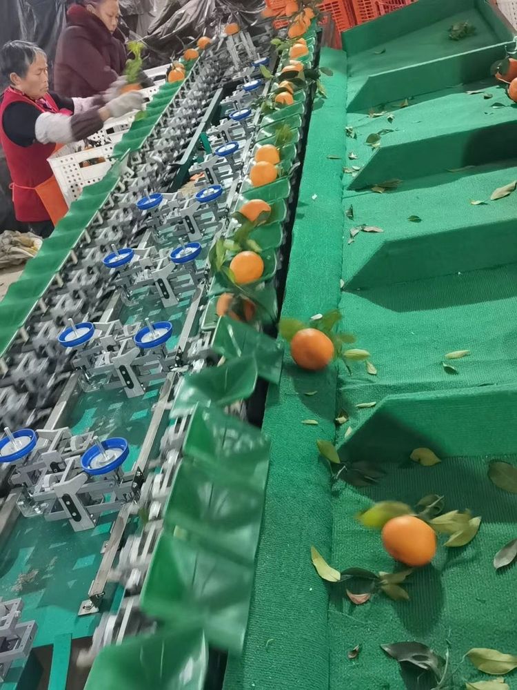 【8】选果机宾预排列技术。只需人工将水果倒在输送带上或上料斗,机械自动将水果进行排队,一个一个落入果盘进行称重分选。