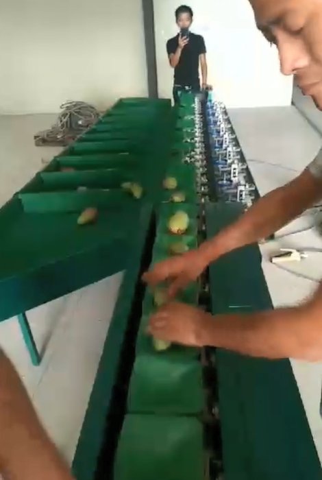 8、先进的预排列技术。只需人工将水果倒在输送带上,系统自动将水果进行排队。