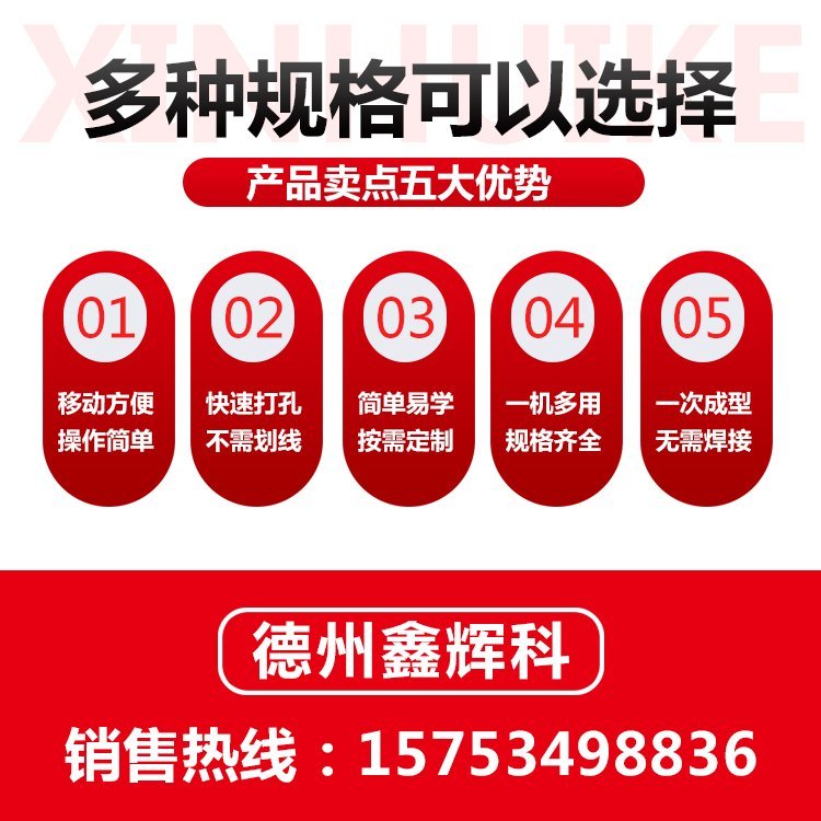 ?高效、高品质、稳定、易维护、易操作、易学易懂,压力够足够稳,模心自动保护,自动排料,省电节能环保,省地方,省人工,省钱,解决了目前市场上普遍存在模具,容易损坏,拆换模具费时,还不一定能对准模,冲孔难拉管,容易卡模,管子容易变型,冲出来起毛刺,占地面积大,容易工伤,操作难等问题。