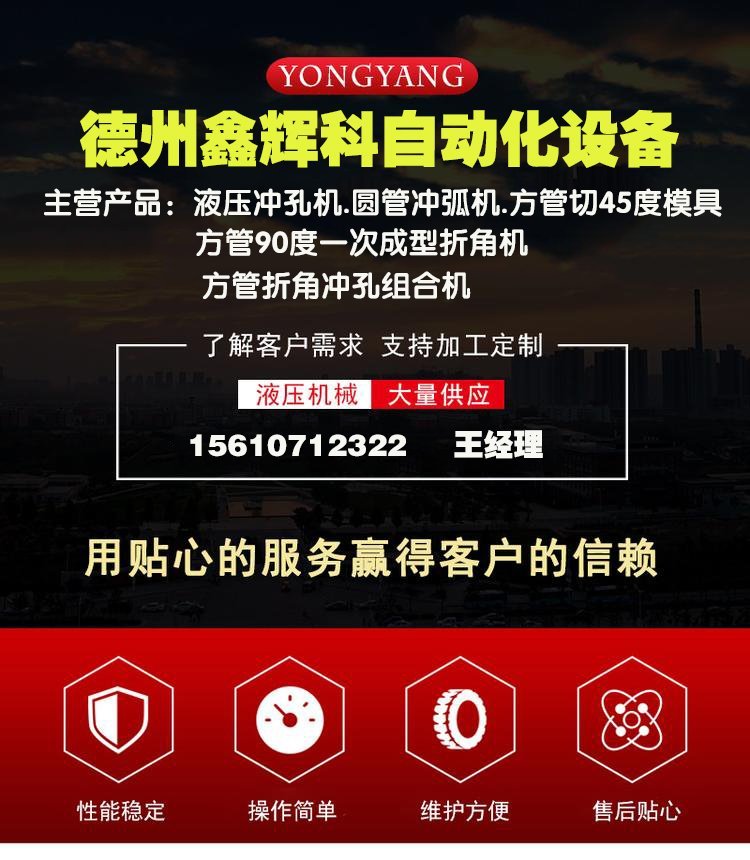 我公司承诺凡是购买我公司液压方管冲角机、方管90度切角机、方管冲孔机、不锈钢冲孔机、圆管冲孔机、液压冲孔机、电动冲孔机、可冲圆.冲方.冲弧.方管下料.角铁切断.槽钢切断.切45度角.方管折90度一次成型.方管折角下料一体机客户除为人损坏外。公司负责免费一年或更换有关机体部件,我们做到时间做出回应,快时间解决问题,坚决配合客户恢复正常使用。联系人:王经理 ? ?电话:15610712322