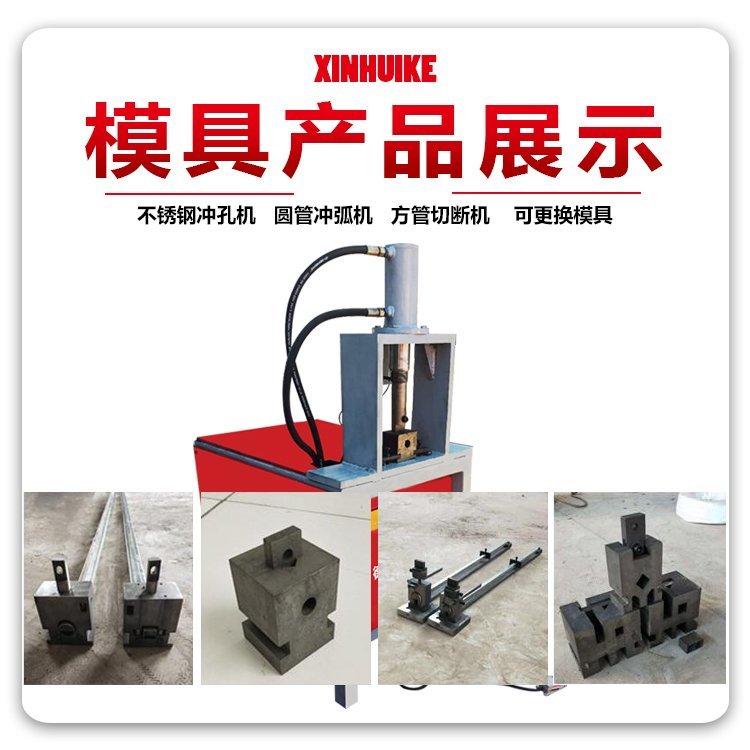 液压冲孔机主要用于防盗网、楼梯扶手、护栏、货架、铁管、各种鞋架、衣架、不锈(方管、圆管、菱型管)、锌钢、彩钢、铝合金等冲孔、冲弧等