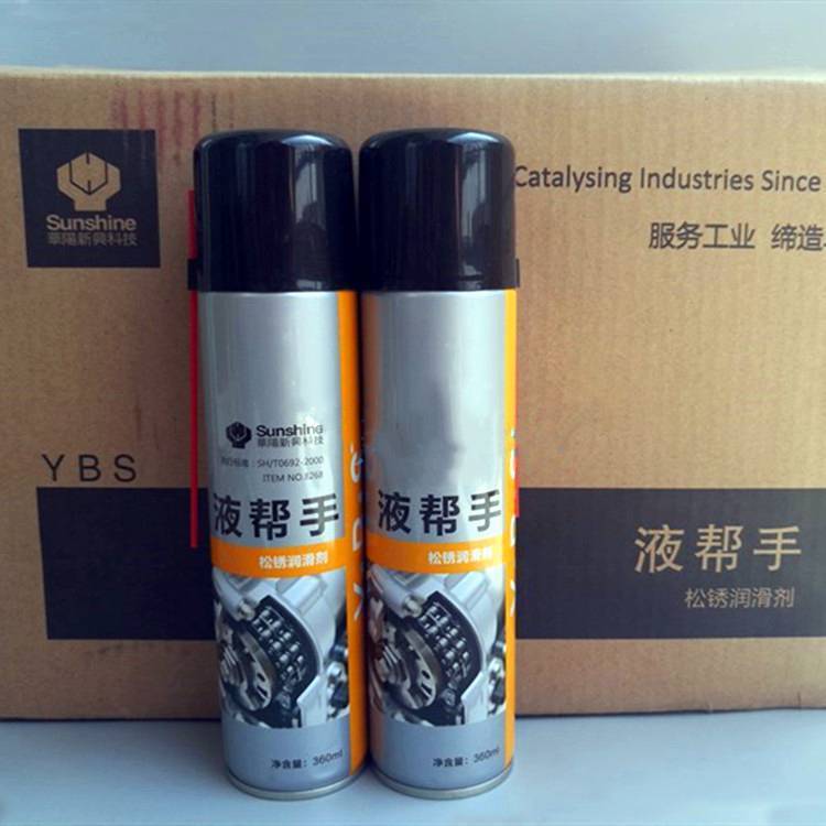 液帮手YBS8268松锈润滑剂,能渗透到金属联接件的细微缝隙中,使锈死的螺栓、零件容易拆开。润滑机具、工具、门栓、销轴、锁具等摩擦部位,降低磨损,消除噪声。清除金属表面的锈斑,并达到防锈效果。清洁工具、机具上的油污、油脂、灰尘和脏物。对金属、塑料、橡胶、木材等无损害,无刺激性气味。