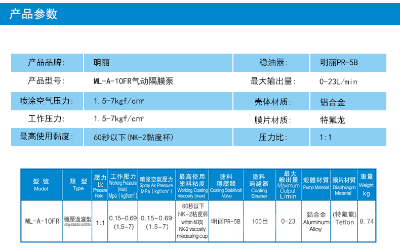 明丽ML-A-10FR过滤稳压气动双隔膜泵涂料喷漆泵油泵泵浦工厂批发