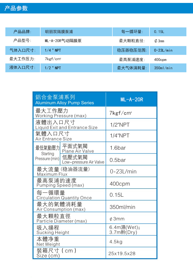 液体出入口尺寸 | 1/2''NPT | ||