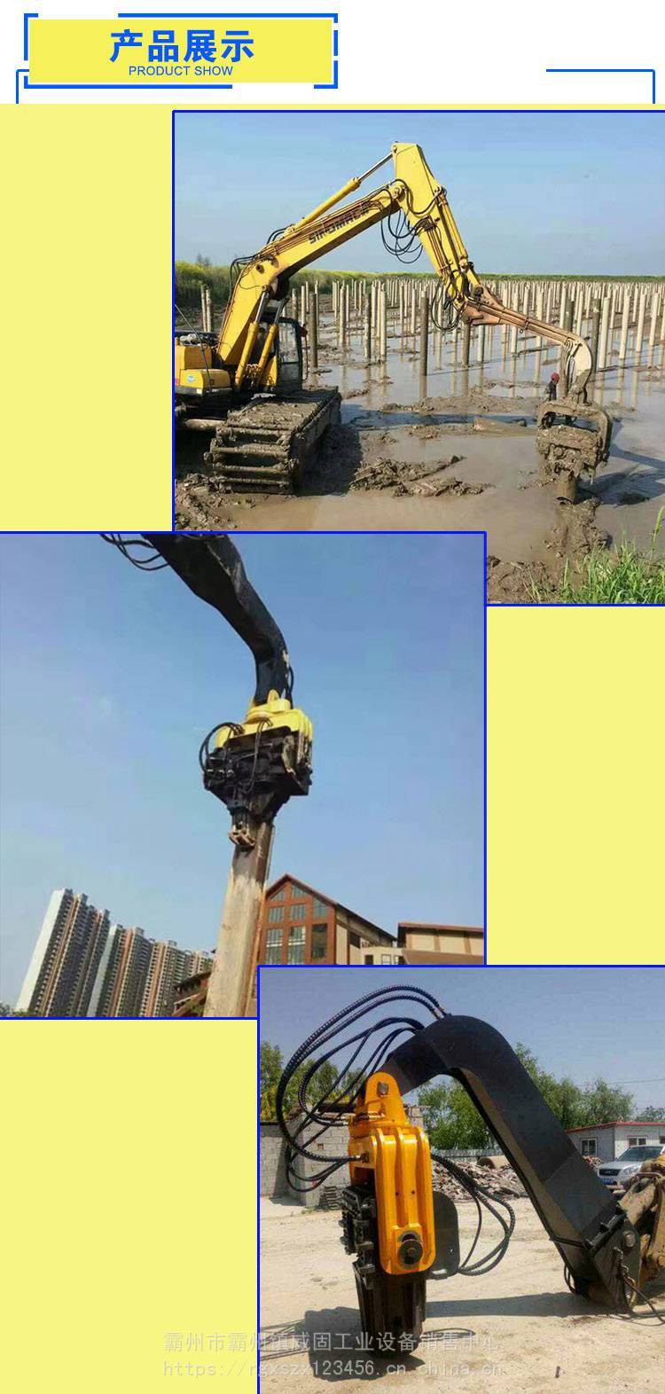 该机是挖掘机的打桩工具,通过高频的冲击力将桩体沉入相应的地层内,根据桩的种类更换不同夹具对其进行打桩施工。具有噪音低,维护少,能耗低,操作简单等优点。进口液压马达,变速箱装备润滑油循环降温系统 长时间工作不会因高温带来损坏。进口轴承及密封件,可在水下作业,为不同工况施工提供了便利,使施工范围更加 ,得到更大的收益。