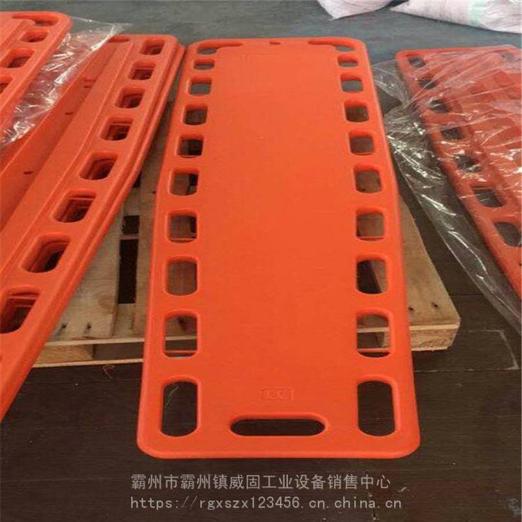 运送事故现场受伤人员。与头部固定器、颈托等配合使用,避免伤员颈椎、胸椎及腰椎再次受伤。担架周边有提手口,可供三人以上同时提、扛、抬,水中不下沉,承重≥250kg。