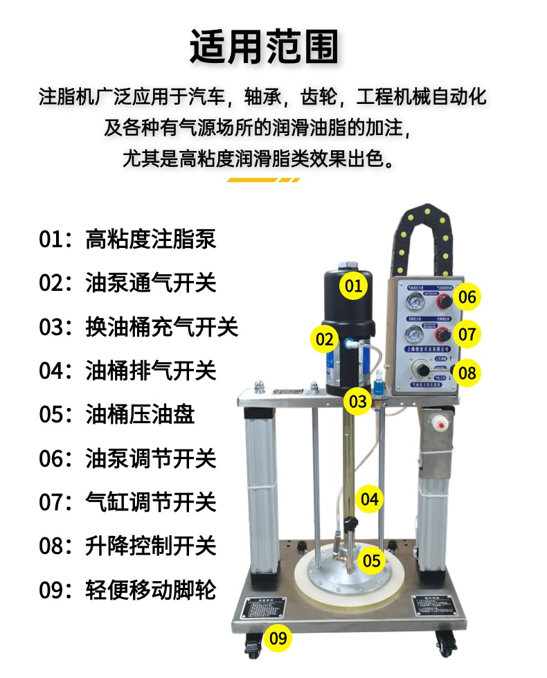 功能用途 | 工业油品德输送定量注脂 | ||