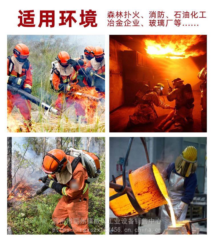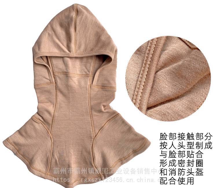 功能:森防用。消防员在灭火救援现场套在头部,与消防头盔和消防员呼吸防护装具配合使用,用于保护头部、侧面部以及颈部免受火焰 或高温