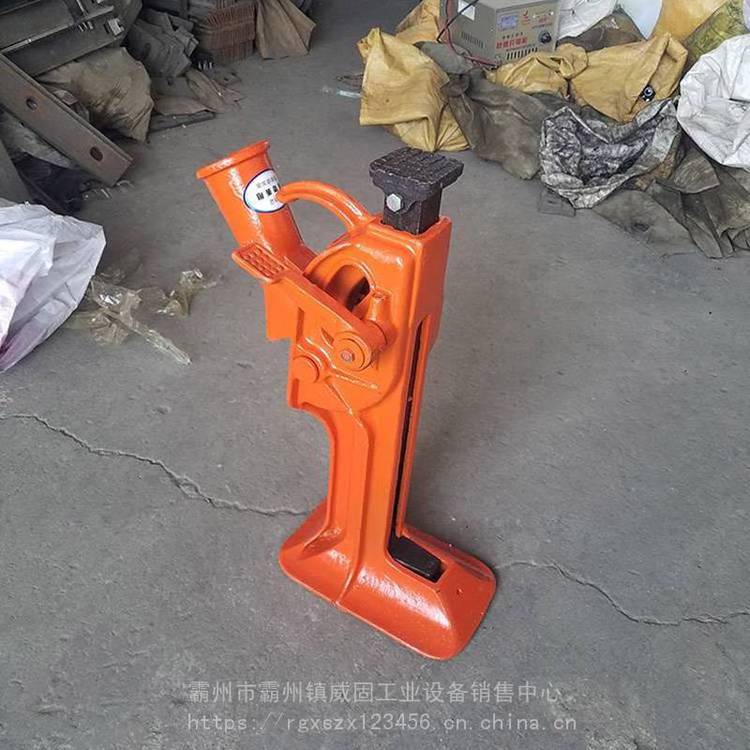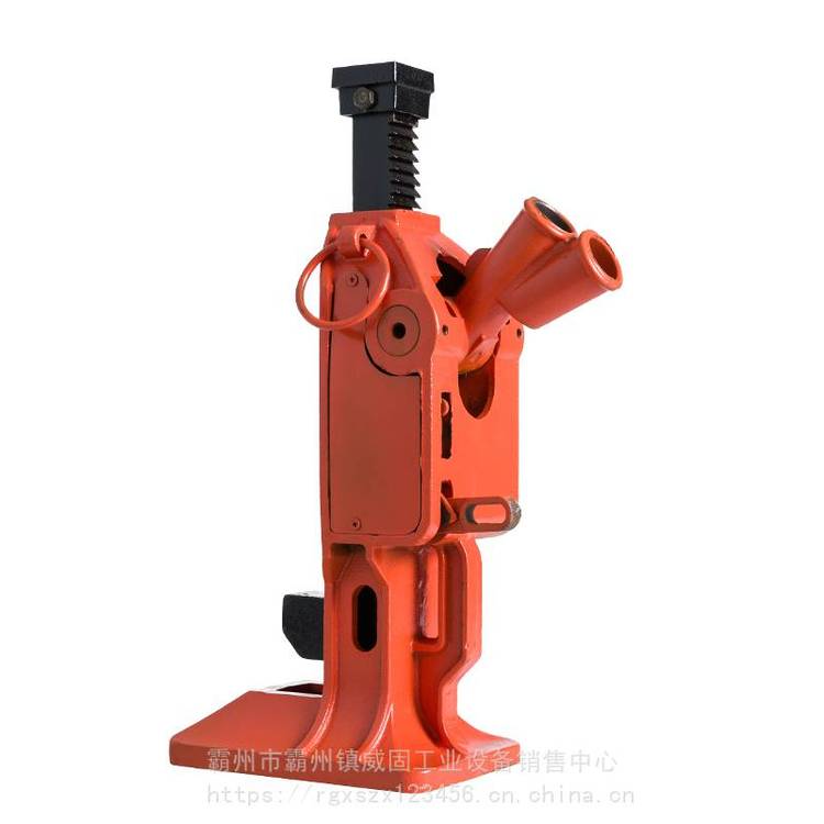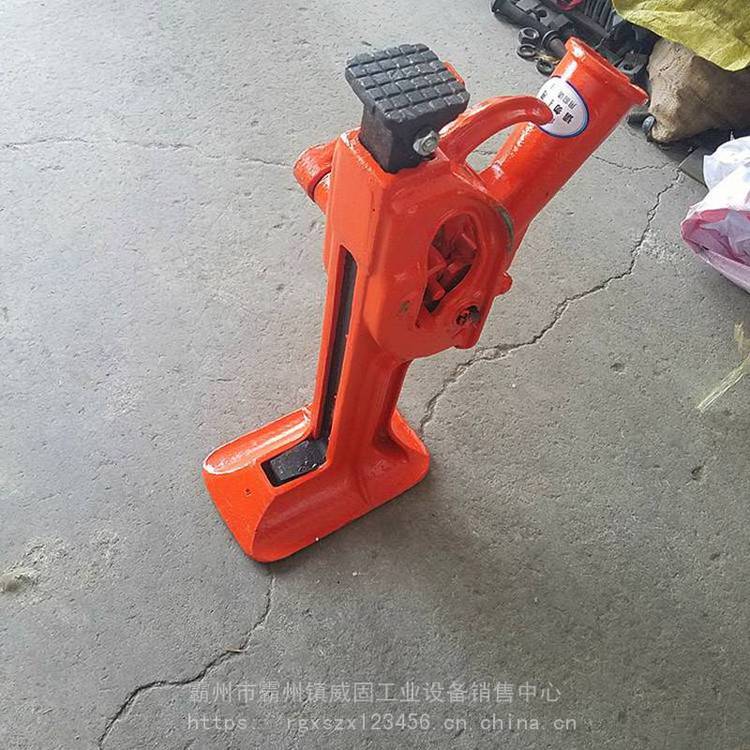 速降(卸载)操作--用撬棍端部用力敲击踏杆(敲击点约在离转动轴心100mm处),齿条即迅速降落至起始位置,实现速降(卸载)。