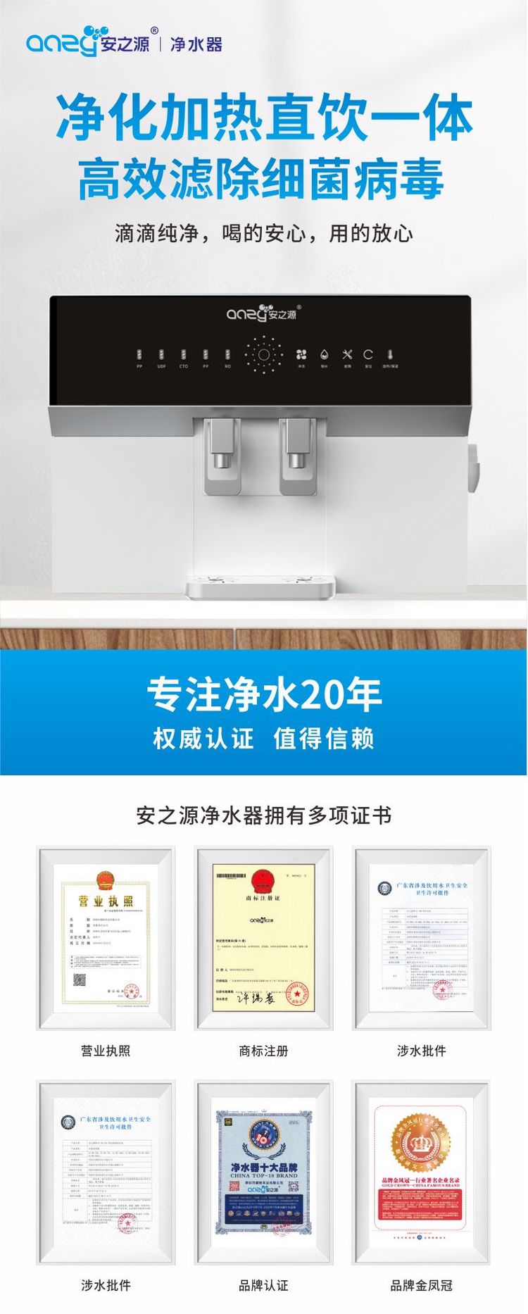 安之源(anzy)自来水直饮净水加热一体反渗透100G家电原装厨房RO纯水机A4