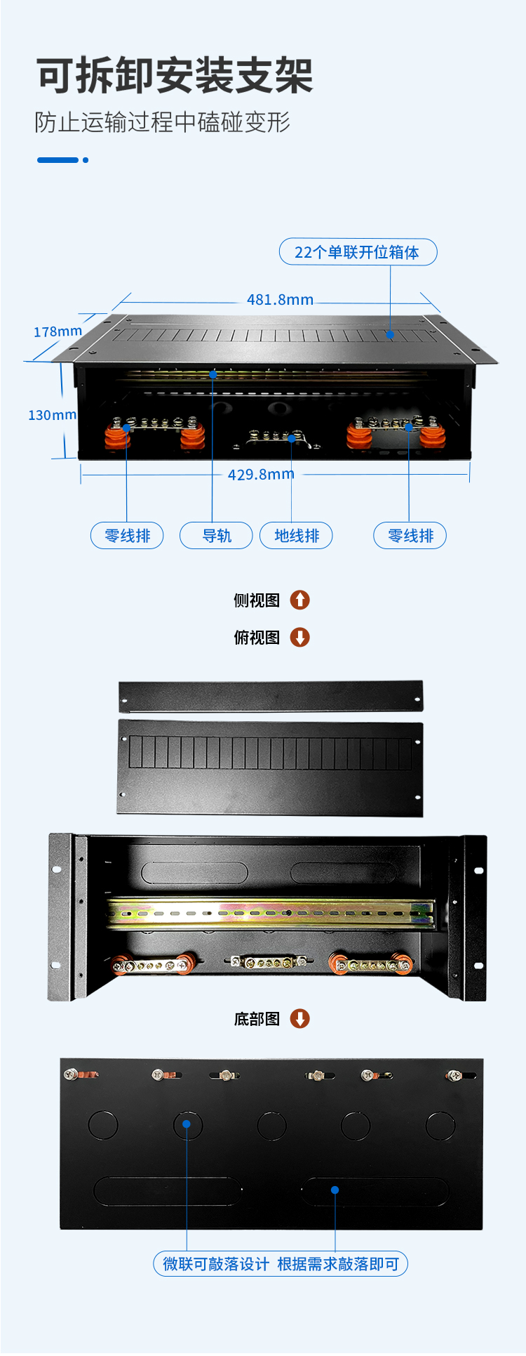 2U3U4U机柜配电单元空气开关架19英寸机架式配电箱电源列头柜
