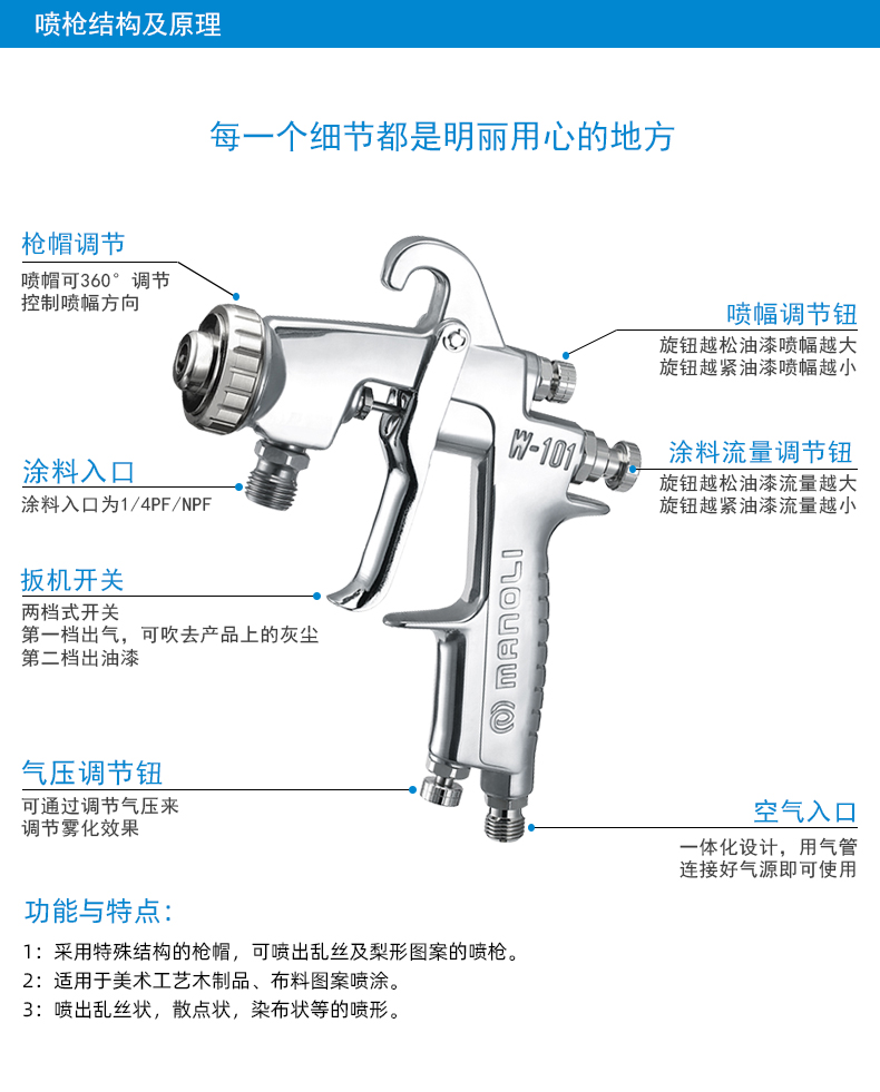 功能用途 | 美术工艺品喷涂乱丝图案 | ||