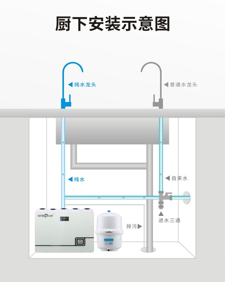 安之源(anzy)新一代节能净水器家庭厨房RO纯水机雅白Y-A型SC-RO-100G自来水直饮机