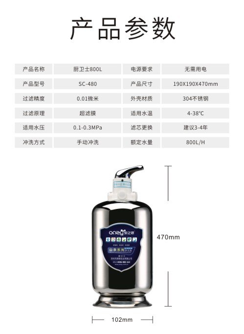 安之源厨房超滤净水除菌管道净水机家庭厨卫800大流量超滤机